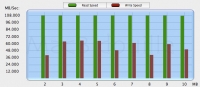 As one can easily see it, if both SSDs obtain similar results in writing mode, the Samsung SSD is almost 2.5 times slower than the Intel model in reading mode.